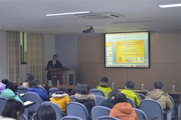 2016年01月13日上午10:00,澳大利亚弗林德斯大学(The Flinders University)医学院Chris Franco教授应邀来365官网进行学术交流,为学院师生作了题为“Beneficial microbes for Australian broadacre agriculture: control of root diseases”的学术报告。Chris教授系统地介绍了其关于内生放线菌的研究成果与最新发现,其中详细介绍了一株分离自小麦体内的内生放线菌在防治小麦根部疾病的作用机理,明确了其在病害防治和诱导植物产生系统抗性中所扮演的关键角色。