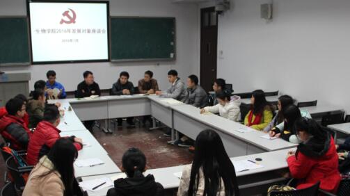 1月5日下午3点,bat365中文官网入口2016年入党发展对象座谈会在中楼103举行,经过选拔产生的23位发展对象、各党支部书记和学生党员代表共聚一堂,围绕“如何做好准备成为一名光荣的共产党员”交流思想、鼓劲加油。负责学生党建工作的辅导员胡品老师主持座谈会。
