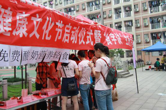 为保证食材新鲜健康,工作人员早早赶到,现场制作养生饮品及养生食物。浓浓的酸奶上点缀着红枣片、黑芝麻、蔓越莓。美味可口的养生酸奶深受同学们的喜爱,活动开始后大约两个小时,酸奶已告罄。除此之外,我们还准备了理气化痰的蜂蜜柚子茶、清热解毒的冰镇绿豆汤、滋阴润燥的龟苓膏等养生饮品,也同样吸引了许多同学前来品尝。他们表示,之前总是把养生与中医中药等方面联系在一起,没想到养生也可以是如此美味,在活动之后,他们必然会更加注重养生,关注日常生活中的养生食物并推荐给父母长辈。
