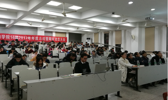 1月5日晚7点,bat365中文官网入口本科2016级年度总结大会暨期末动员大会在综合楼109教室顺利召开。本次大会由16级团总支刘扬影主持,党委副书记高耀洪、辅导员潘昳锦、班主任林建中、涂海军、葛行义以及全体16级同学参与。
